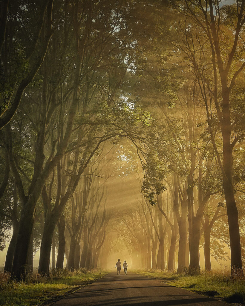 Ik hou vooral van het zachte ochtendlicht, liefst met mist en zon, daarom volg ik het weerbericht & apps voor mist en luchtvochtigheid. Als het mooi is ‘s ochtends en ik loop buiten dan gaat mijn hart “open”, soms lijk ik net een maffe toerist die overal rondhuppelt, of ik sta heel lang te wachten tot er iemand door mijn beeld fietst of loopt, omdat dat echt meerwaarde heeft voor mij.(foto)