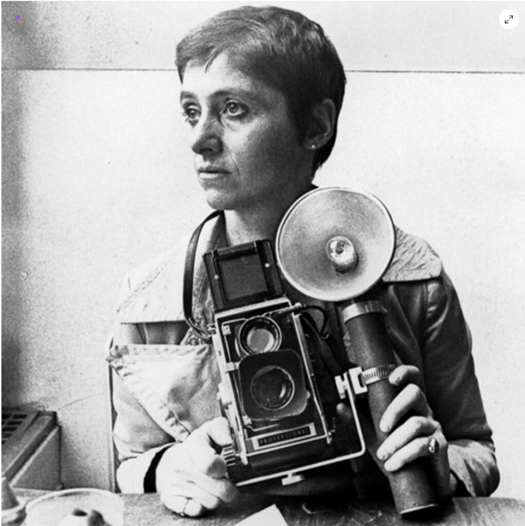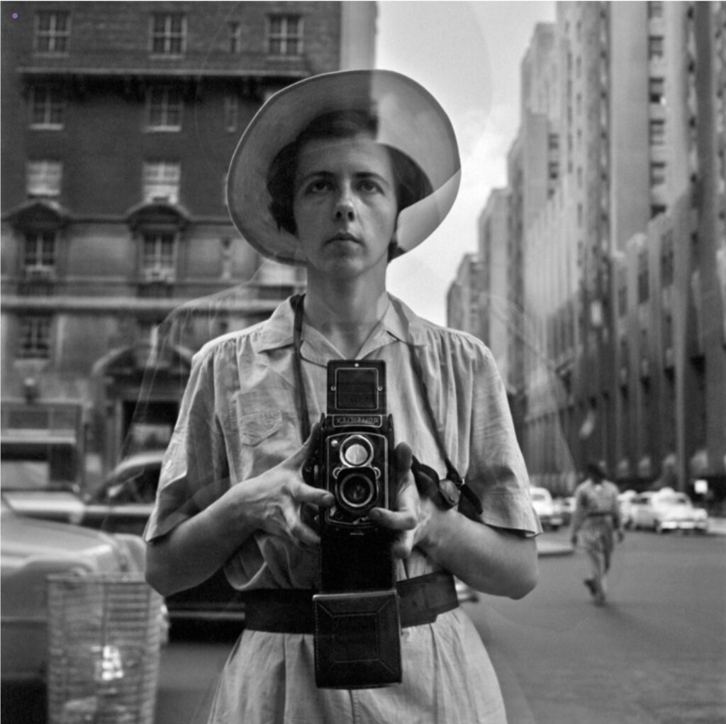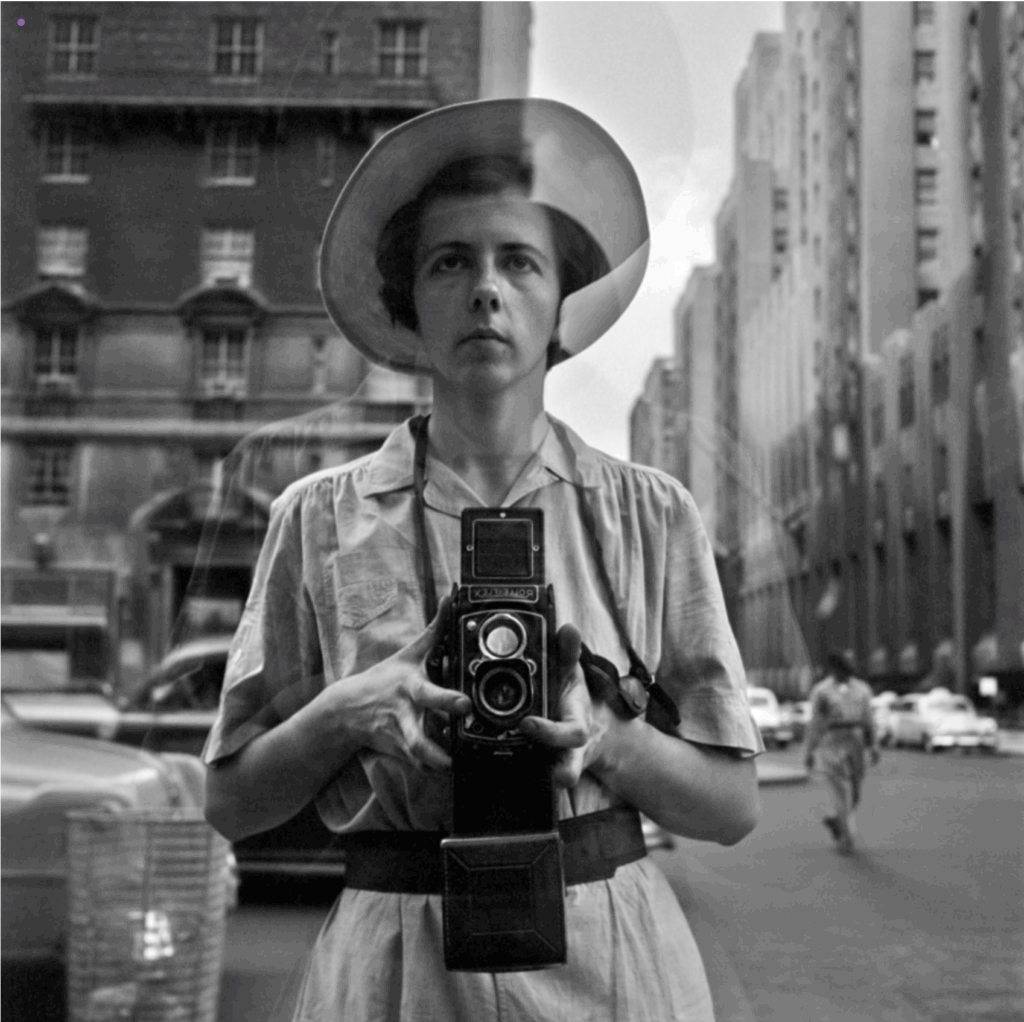 Vivian Maier was een mysterieuze straatfotograaf (de ‘onzichtbare fotograaf’) wier werk pas na haar dood in 2009 werd ontdekt en sindsdien wordt geprezen om een unieke oog voor detail en compositie. De Amerikaanse werkte ongeveer veertig jaar als kinderoppas; zat haar werk erop, dan trok ze met een Rolleiflex-camera door de straten van Chicago, Los Angeles en New York om mensen te fotograferen. Niet alleen de mooi uitgedoste rijken, maar vooral de minderbedeelden: straatkinderen, zwarte dienstmeisjes en op winkelstoepjes bivakkerende zwervers. Het resulteerde in meer dan 150.000 zwart-witbeelden, waarop ook veel architectuur en ‘zelfportretten’ (Maier zichtbaar in een winkelraam). Haar vindingrijke en humoristische manier van kijken, herinnert aan het werk van grootheden als Berenice Abott en Weegee. Opvallend is dat Maier haar foto’s angstvallig verborgen hield voor haar omgeving. En het is maar de vraag of deze nanny het wel zo prettig gevonden zou hebben dat haar werk nu wordt erkend als een van de belangrijkste bijdragen aan straatfotografie.