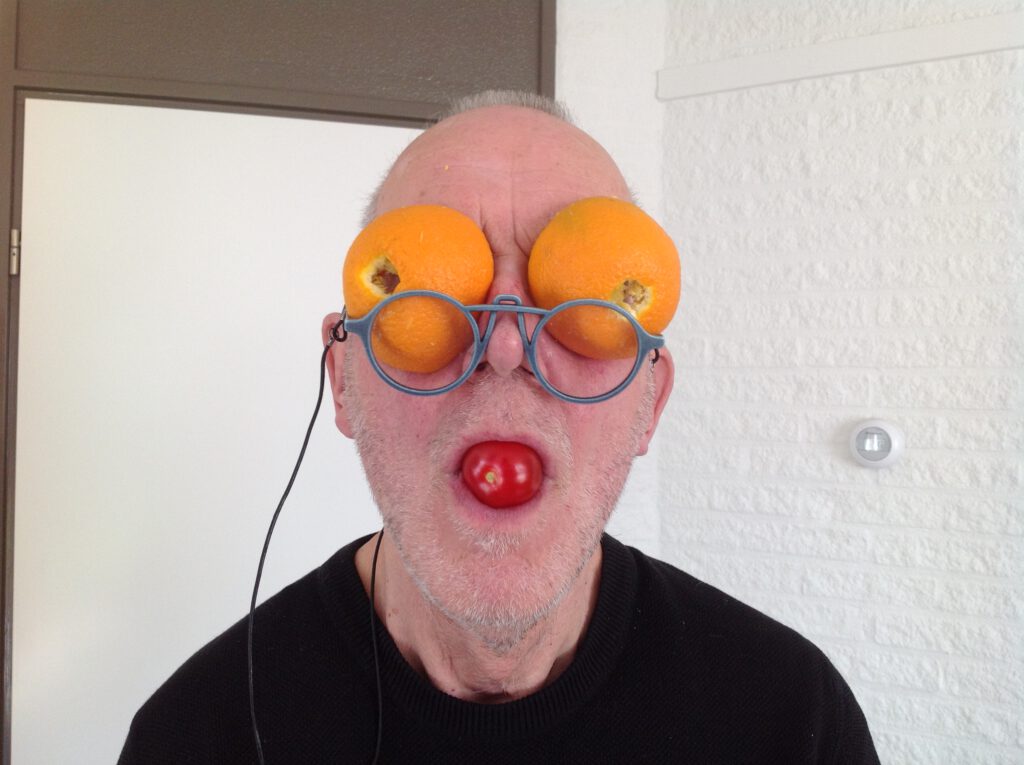 Koekenbier leent zich uitstekend om al onze fotografische werken naar voren te gaan brengen. Geregeld is de uitsmijter van de avond een persoon, die zo zijn eigen interpretaties naar voren weet te brengen. Een kunstenaar in hart en nieren die geregeld een ander pad volgt dan gangbaar is. Die ook in staat is om een figuurlijk gezegde letterlijk in een beeld weet om te zetten. Neem nu bijvoorbeeld een ‘oogappel’ voor ogen. En kijk niet vreemd op wanneer hij in staat blijkt te zijn om letterlijk met dit voorbeeld aan de haal te gaan. Zijn naam: Kees Oosterbaan. En wanneer Kees de draak steekt met wat anderen totaal anders naar voren weten te brengen, weet hij ons aan alle kanten te vermaken. Voorbeelden te over en zijn uitleg ten aanzien van zijn werk zorgt geregeld voor een applaus. Waarbij hij probeert om zijn verlegenheid ook nog eens te relativeren. Zijn stelregel is dat ook anderen over voldoende creativiteit beschikken, alleen dit niet altijd naar voren weten te brengen. Het is als het ware een drempel waar je overheen moet gaan stappen en schijt dient et hebben aan ‘Dronken Naatje.’ Bekend van ooit een beeld in Amsterdam.