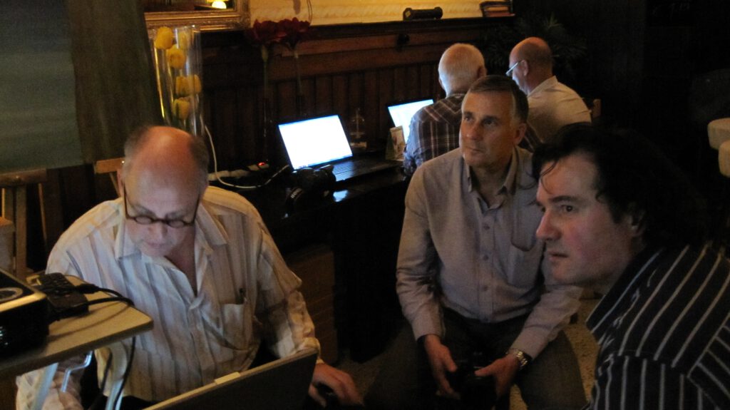 Vorig jaar namen we afscheid van Ton en Sophie. En konden hen nog een stoffelijk blijk van waardering geven. En ook Jan deelde in die feestvreugde. Dat was en is hem dan ook van harte gegund. Edoch, waar wij op een ander moment ruim 45 leden kenden, loopt het aantal dramatisch terug. Dat wil zeggen dat we nu rond de 35 leden kennen. En het lijkt mij een uitdaging wanneer wij weer andere mensen weten te strikken. Want het is en blijft een feest om met de thema’s aan de loop te blijven gaan. Heb echter geen idee op welke manier wij ons verder kunnen profileren. We hebben immers een eigen website, we beschikken over kundige docenten en we hebben het genoegen om de Stadsfabriek als thuisbasis te gebruiken. Wat op zich toch wel een heel aparte ambiance kent. Dat je je wel in de dubieuze winters moet kleden, dat de houtkachel voor warmte en ook een geur garant staat, dat de bar zich uitstekend leent om drankjes te bekomen, dat er geregeld nootjes te vinden zijn, ook dat heeft wel wat. Past uitstekend bij de leden die nog steeds met veel genoegen hun opwachting komen maken. En waar naast het beeldscherm ook de tafels nog van werken worden voorzien.